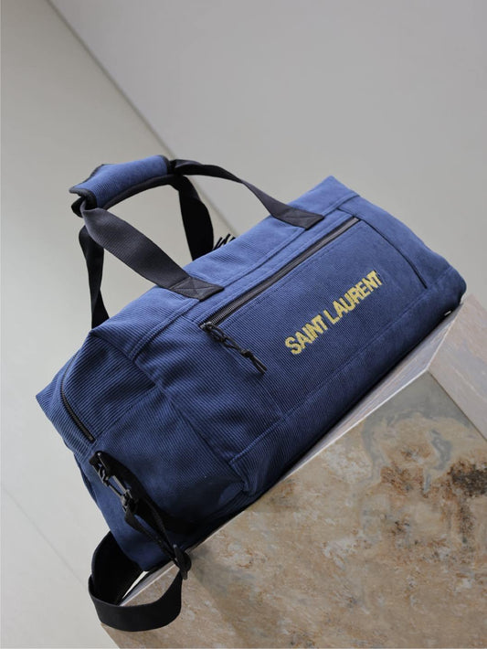 Saint Laurent Nuxx Logo-Embroidered Corduroy Duffle Bag
