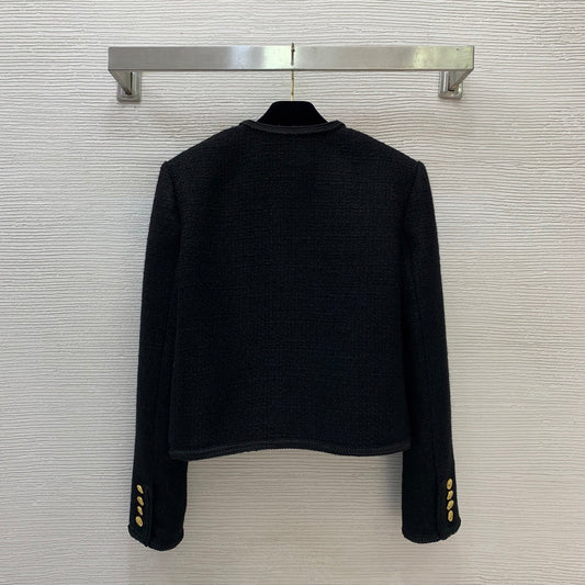 Slim Fit Wool Knit Cardigan Black Crew Neck Cropped