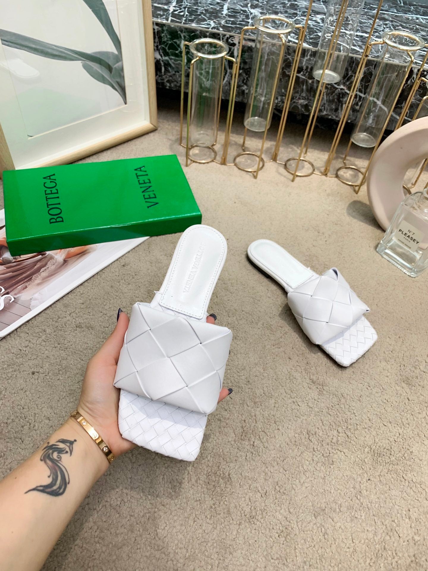 Step into effortless luxury with the BV (Bottega Veneta) Chunky Woven Flat Sandals, a masterpiece of hand-crafted elegance. These sandals showcase BV’s signature woven design, meticulously hand-woven for a distinctive, artisanal texture. Developed from the original mold, they provide a precise, comfortable fit while maintaining the brand’s iconic aesthetic.