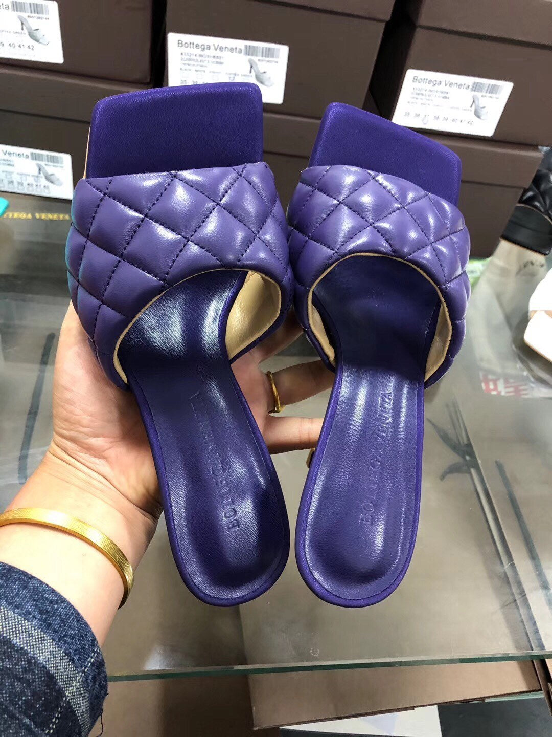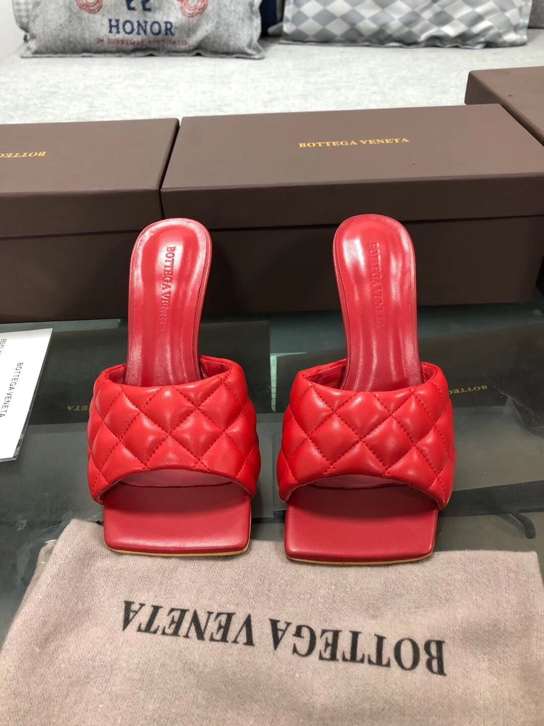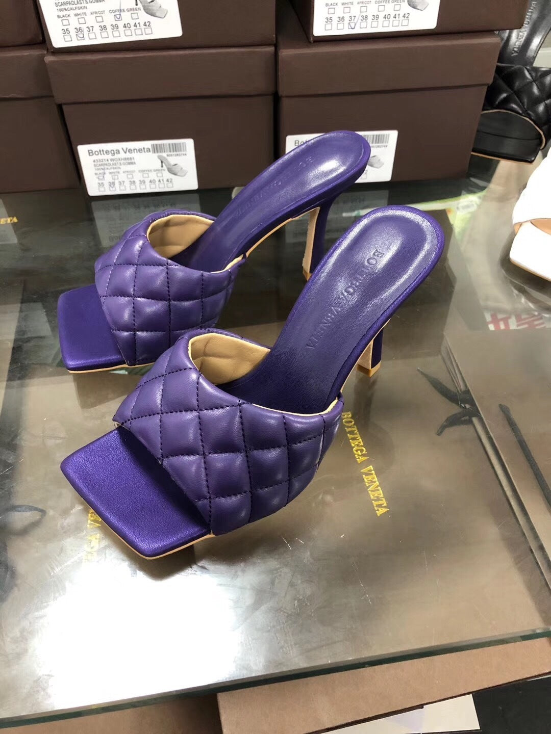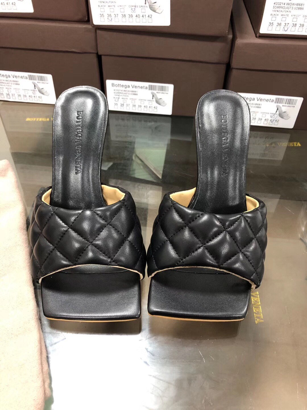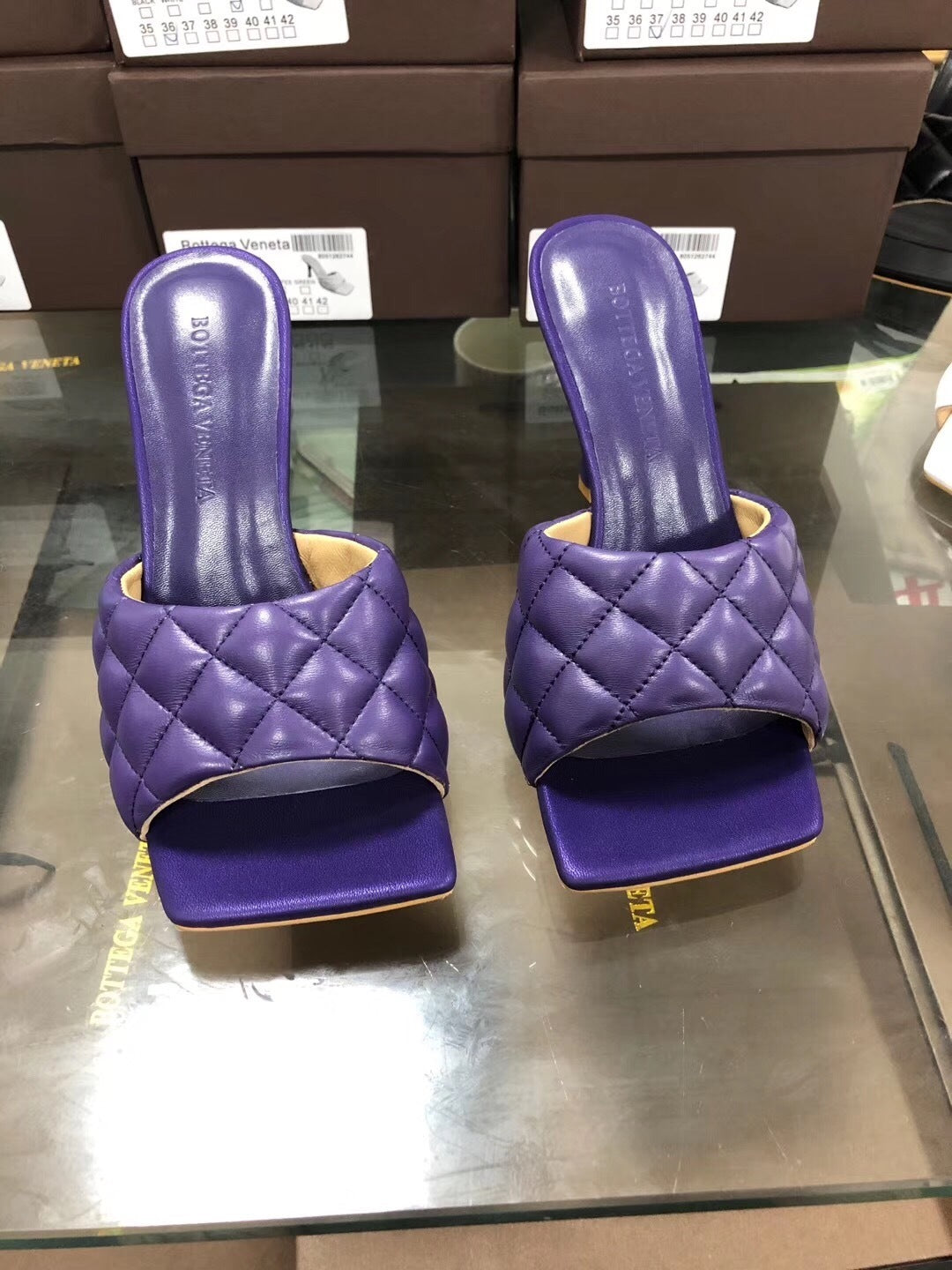 These BV (Bottega Veneta–style) high‑heeled slippers from the 2020 Early Spring collection combine luxurious materials with refined craftsmanship for an elegant, feminine look. The upper is made from imported sheepskin, lending the shoe a soft, supple texture with a richness that elevates its designer appeal. Inside, a goatskin insole provides a plush, luxurious base underfoot — goatskin is known for its fine grain, durability, and comfort, giving a refined feel.