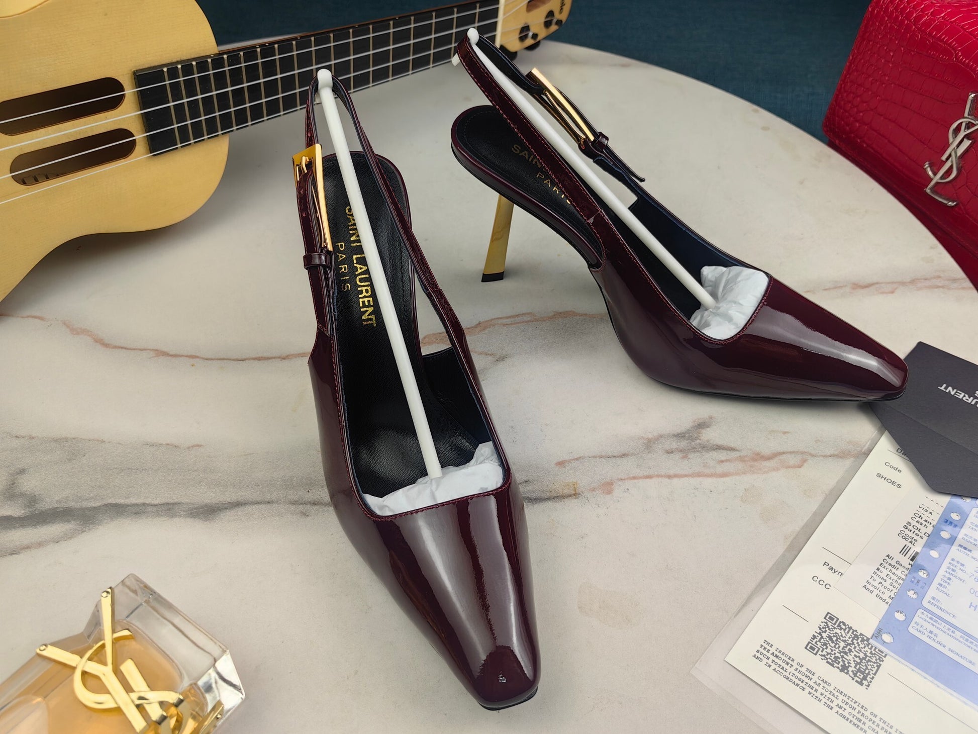 Step into timeless elegance with the W144 Saint Laurent Stiletto Heel Electroplated Open Back Shoes, part of the 2023 Early Spring collection. This masterpiece combines classic design with modern fashion flair, making it a standout in any spring/summer wardrobe. Featuring an iconic YSL gold logo buckle, these shoes offer a luxurious on-foot effect that highlights sophistication and style. Crafted from Italian imported black calfskin and patent leather, with optional dark wine red patent leather, they are lined with premium sheepskin for comfort.